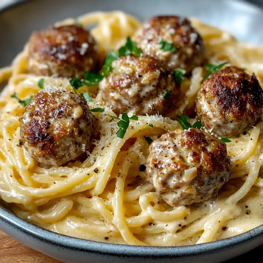 Garlic Butter Meatballs : Parmesan Linguine Delight